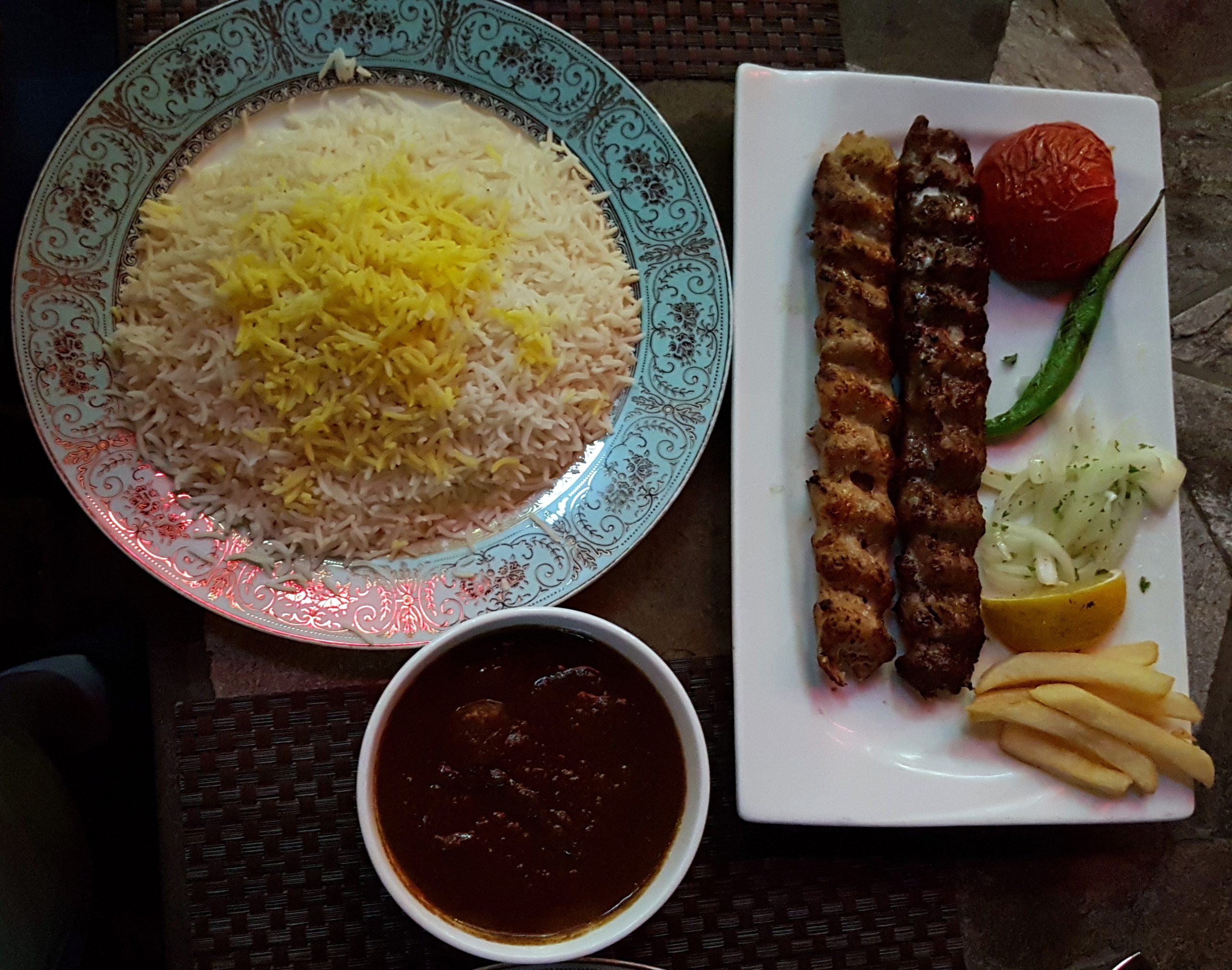 Jheefa sheek/khaati, minced lamb in herbs, grilled and served with salad and mint sauce.